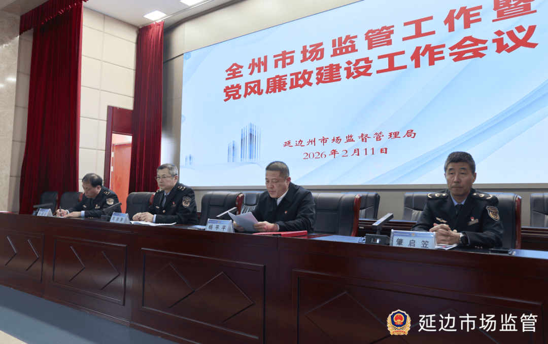 2月11日,延边州市场监视办理局召开2026年全州市场监督工做暨党风廉政扶植工做会议。延边州市场监视办理局党组、局长周洪涛做工做演讲,党组、副局长刘百川掌管会议。